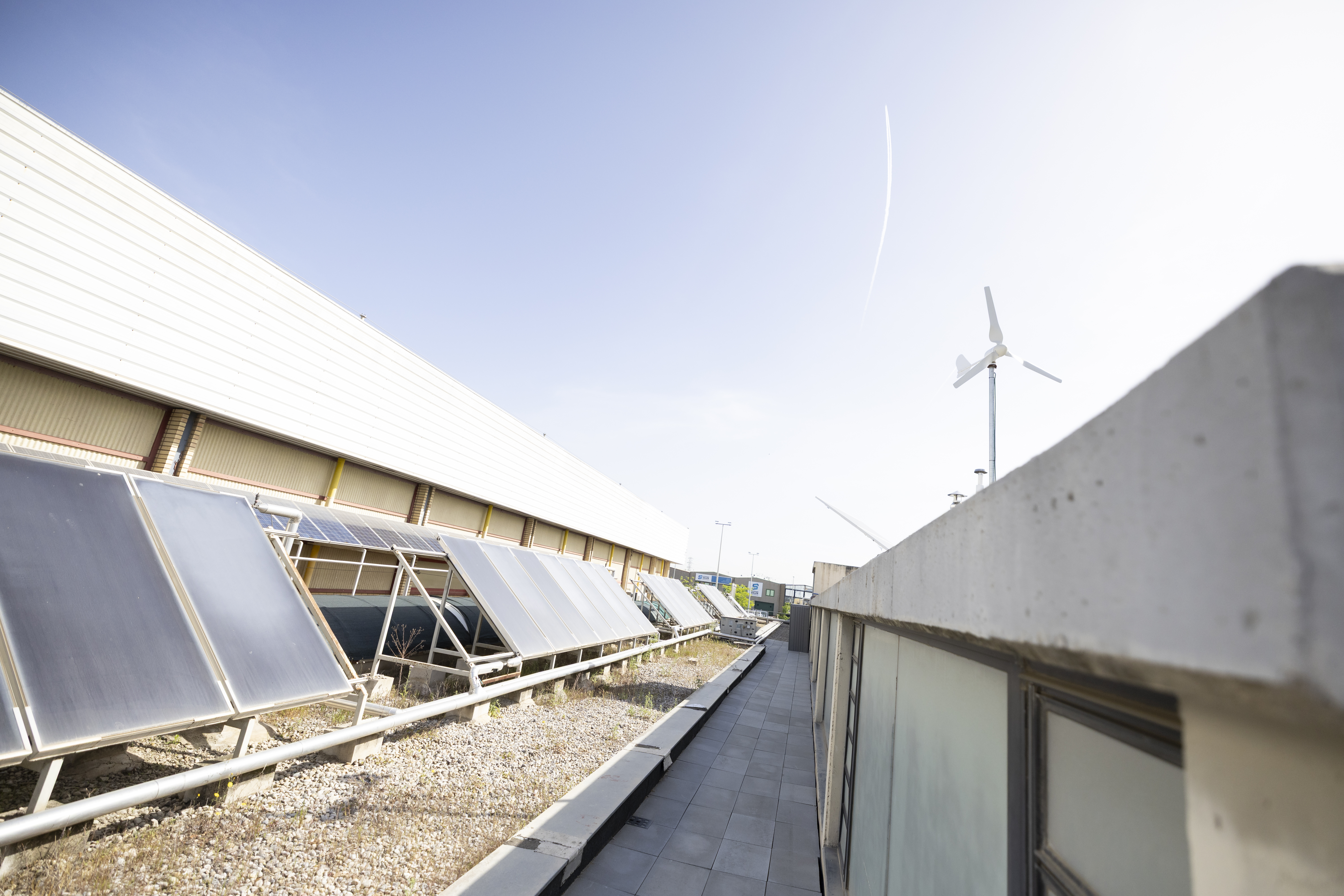 En el cas de la coberta del Complex Esportiu Municipal Estruch, s’ha adequat l’antiga coberta, que abans no es podia trepitjar, per un nou espai de formació a l’aire lliure i amb capacitat, també, per a 25 persones. Aquesta zona s’ha dotat d’equipament tècnic d’última generació, incloent kits fotovoltaics amb seguidor solar, aerogeneradors, col·lectors tèrmics i calderes de biomassa, essencials per a les pràctiques en energies renovables.
