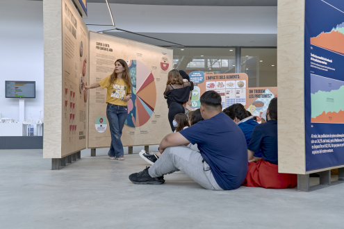 En 15.000 m2, Fundesplai ha construït una gran exposició 'Menja, Actua, Impacta' per explicar com afecta el sistema alimentari actual a la salut de les persones i al planteta. Especialment, els productes procedents d’animals produeixen un impacte difícil de gestionar i totalment insostenible en un futur. Amb l’objectiu de sensibilitzar i proposar alternatives a aquest sistema, l’exposició serveix per donar dades i situar el problema amb panells informatius, vídeos , infografies i una experiència immersiva. La visita a l’exposició es pot complementar amb tallers temàtics.