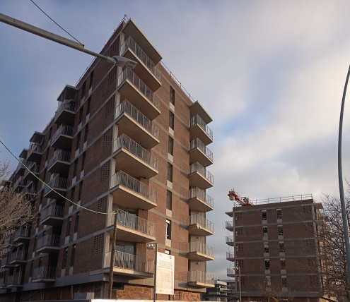 L’edifici, actualment en fase final d’obra, forma part de l’aposta sostinguda del municipi per ampliar el parc d’habitatge públic. En aquest sentit, a l'Eixample Sud s'estan impulsant actualment més de 300 pisos de lloguer assequible en tres promocions diferents, totes en solars cedits per l'Ajuntament, la qual cosa permetrà duplicar el parc públic disponible a la ciutat. Un centenar de pisos, promoguts per la Cooperativa Obrera de Viviendas, ja es van entregar a inicis d'aquest 2026. L'empresa pública Prat Espais promou un tercer bloc.