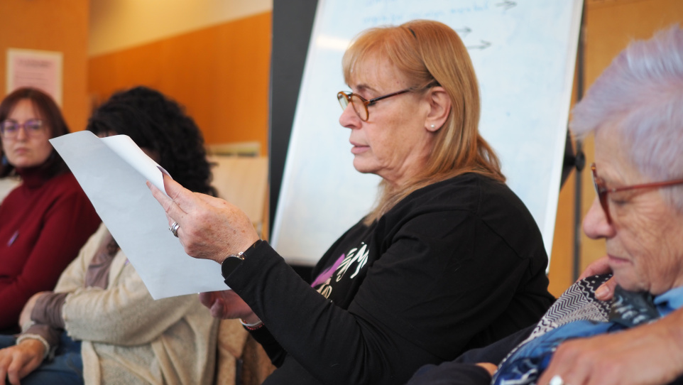 A la part final de l’acte, la Graciela i la Mari Carme Àvila, membres del grup autònom de lectura de la Palmira Lectores, van compartir amb les participants la lectura d’uns textos que havien preparat especialment per a l’ocasió, aportant un moment emotiu a la trobada.