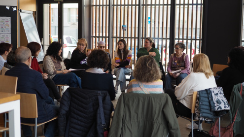 El passat dissabte 7 de març al matí, el Centre Cívic Palmira Domènech va acollir la trobada Veus que transformen, una activitat organitzada amb motiu del Dia Internacional de les Dones que va reunir una dissetena de dones vinculades al centre i veïnes del barri en un espai de diàleg i reflexió compartida.