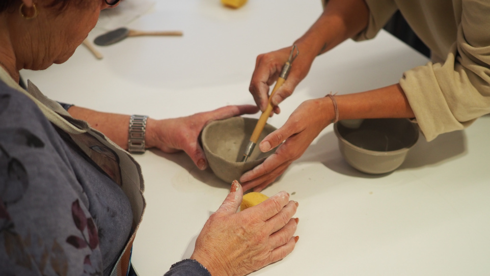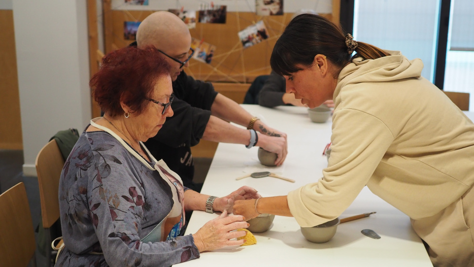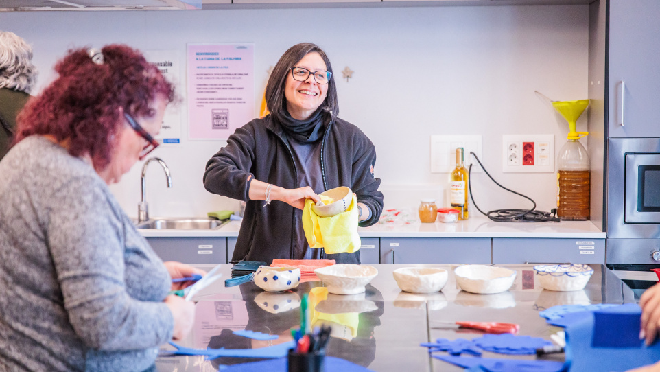 Del fang al plat és un projecte comunitari que combina arts visuals, ceràmica i gastronomia. Durant vuit sessions, guiats per l’artista Miriam Galván, hem après tècniques manuals de ceràmica i hem dissenyat una vaixella comunitària, artesanal i única que quedarà a la Palmira.