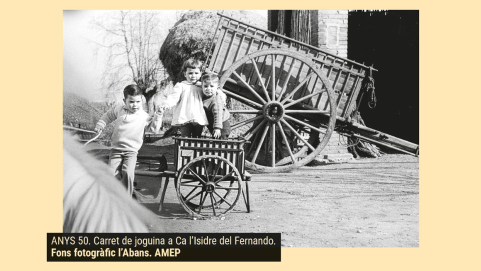 En l’ambient de les cases de pagès, les joguines eren escasses. La canalla es distreia amb els animals: gossos, gats, pollets... O amb la natura de l’entorn: pujant a les figueres, saltant el rec o fent salts des de la tartana.