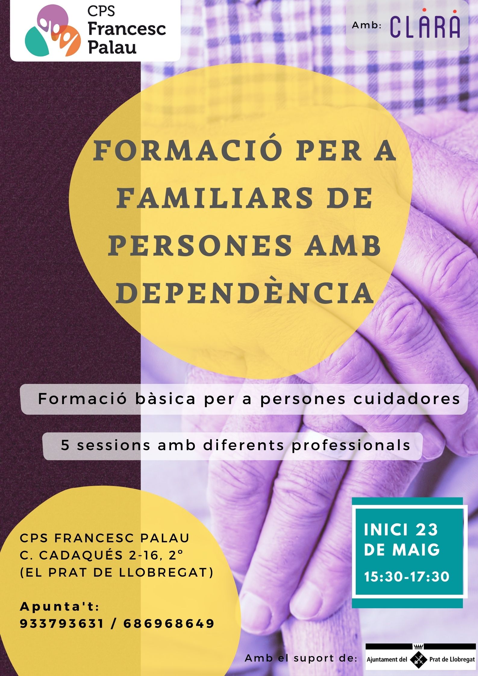 El CPS Francesc Palau durà a terme una formació per a familiars de persones amb dependència, que començarà el proper dimarts 23 de maig.