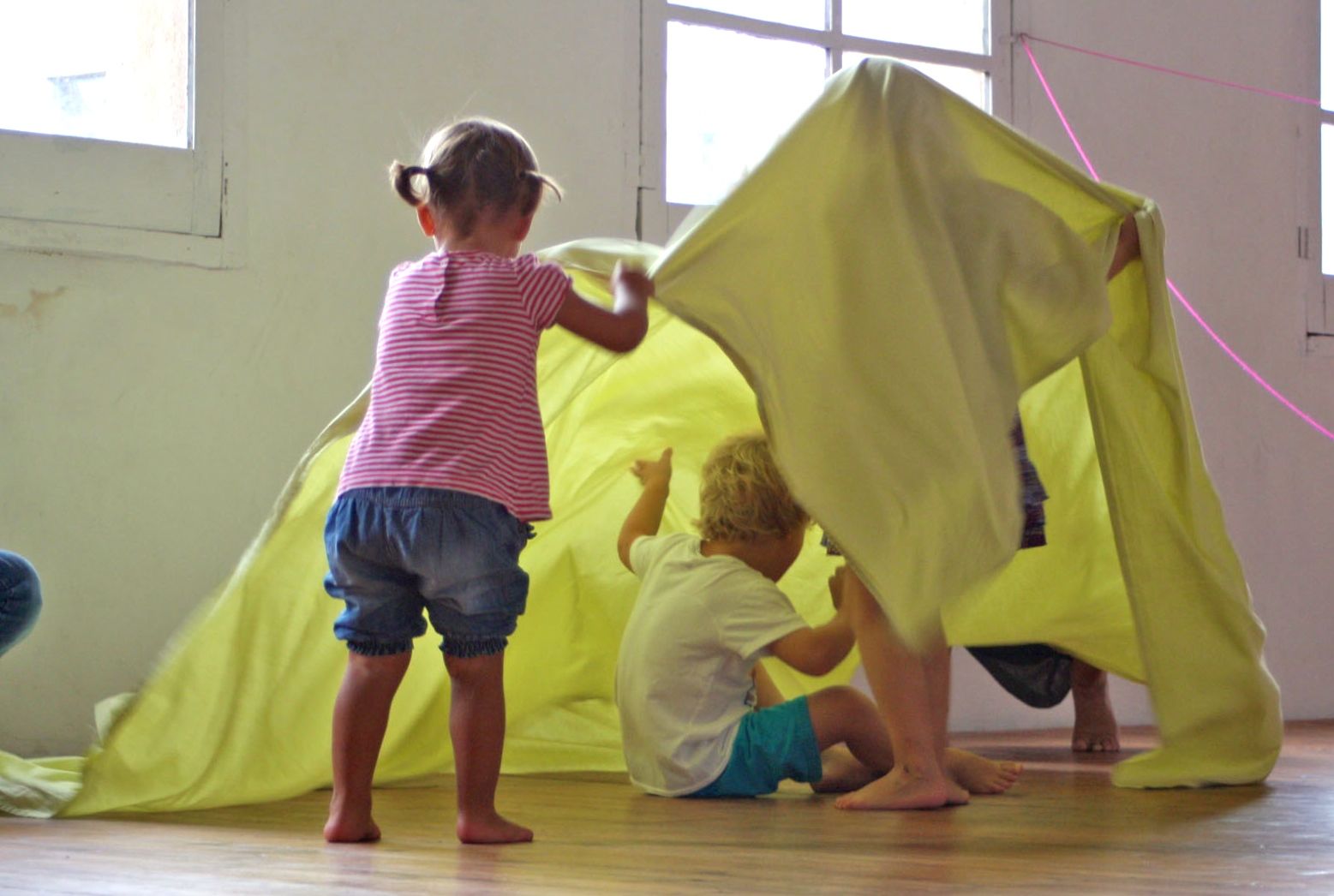 Moure’ns junts, ballar, experimentar, encuriosir-se, gaudir, cantar, parlar, escoltar, descobrir, construir, reconstruir, divertir-se i observar. Utilitzarem cançons, jocs tradicionals i improvisacions guiades amb diferents materials no estructurats: peces de fusta, teixits, llanes, capses, cordes, papers…, per a proporcionar diferents experiències.