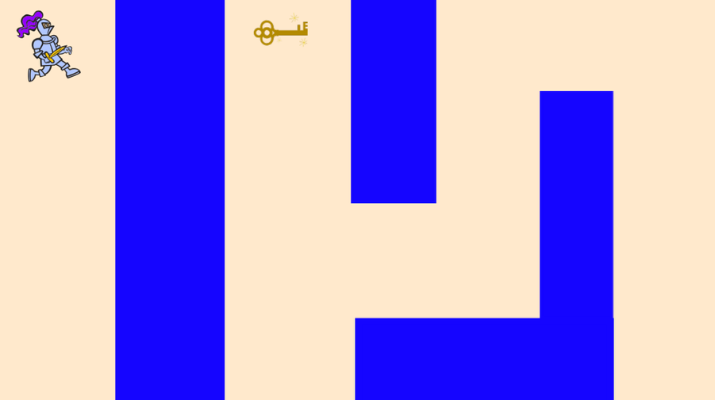 En aquesta activitat programem un joc tipus "dungeon" amb Scratch. El personatge ha de recollir una clau i escapar del laberint sense tocar les parets, i escapant dels enemics.