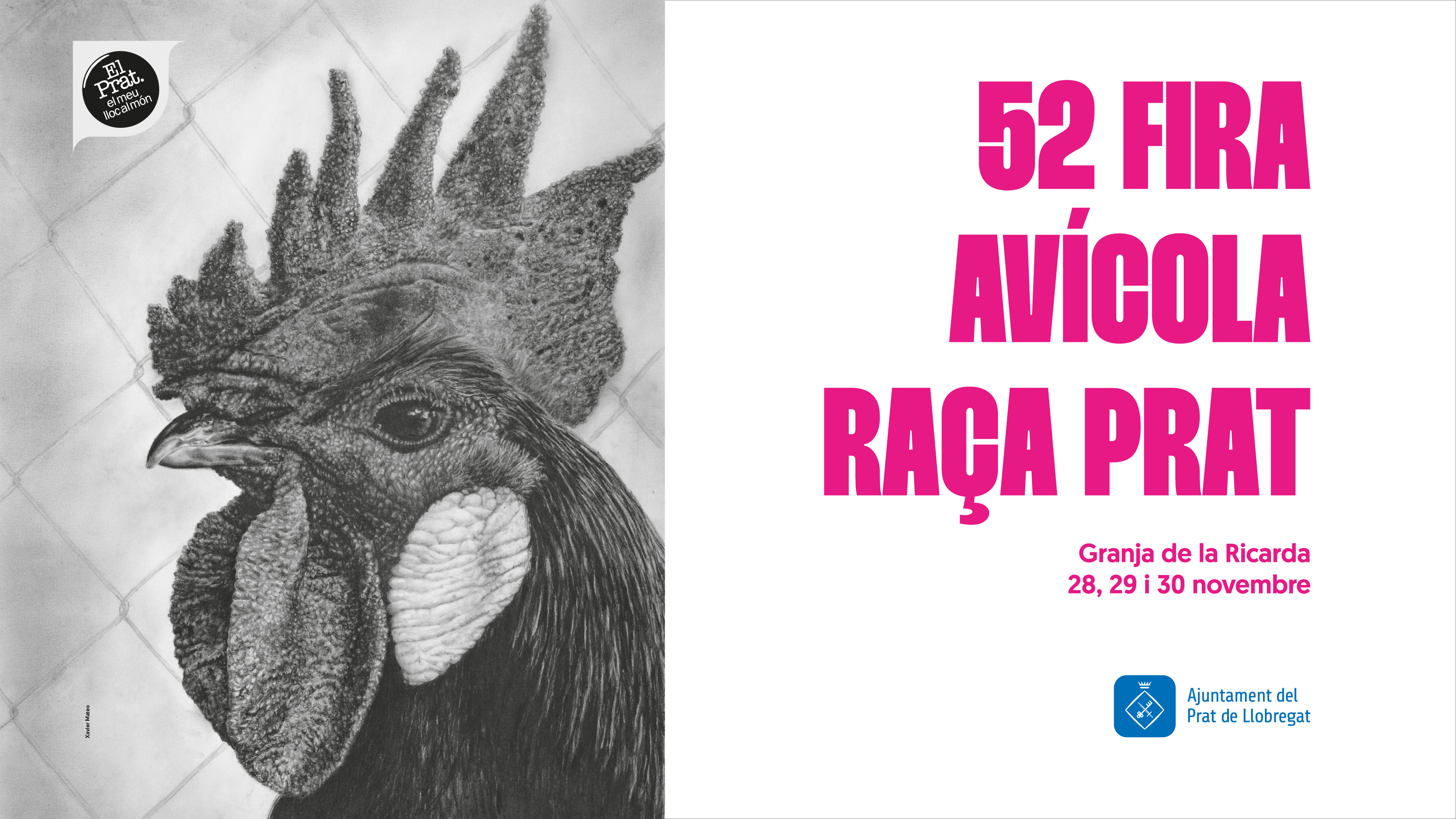 Els pròxims 28,29 i 30 de novembre se celebrarà la 52a Fira Avícola del Prat de Llobregat, la festa major de tardor-hivern de la ciutat. La fita anual rep milers de visitants, tant pratencs i pratenques com de municipis del voltant i és un reconeixement a la tasca del sector primari local: la pagesia i els criadors i criadores del Delta.